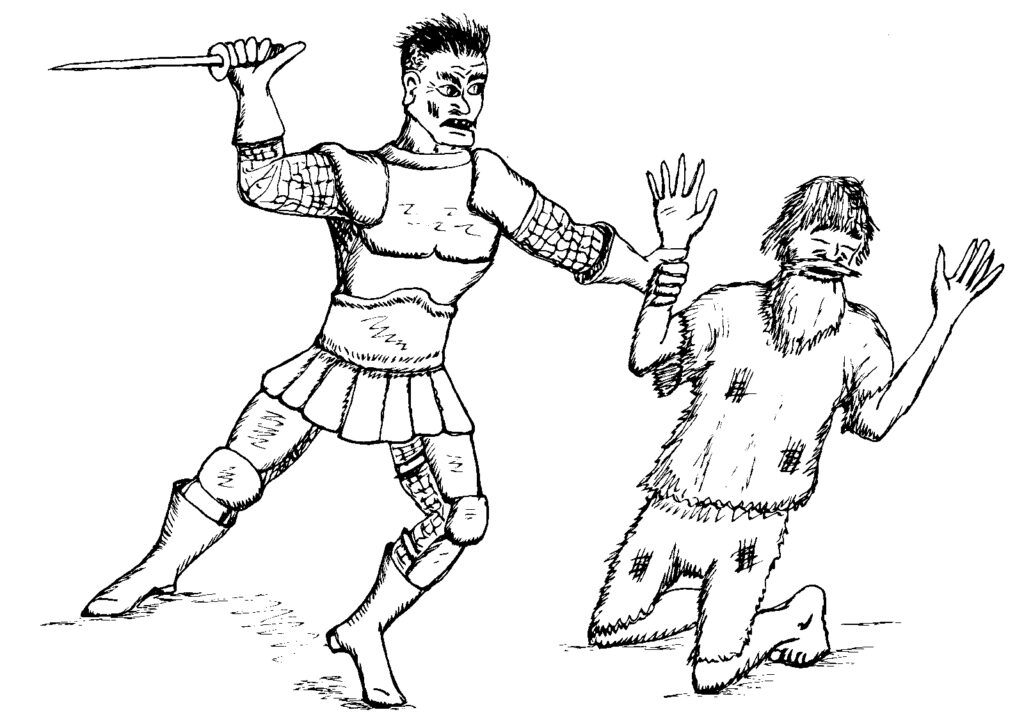 Jerker, unable to contain his rage, drew his crystal sword, Ithush. Nate, guessing his intent, leaped on the warrior and wrestled the sword from his hand, but the next moment, Jerker drew a dagger and plunged it into Bremlai’s neck. The old man gasped once, then collapsed into silence. They freed him from his chains and took the body with them. They delivered it to the forge where they hoped Amalgus would put it to use in creating another golem. They also delivered a plan for the golems.