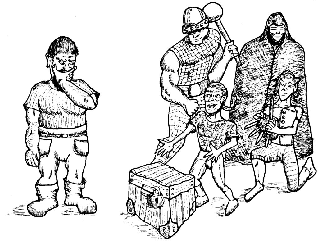 The hunt for werewolves was set aside for a week. Jerker remained at Lah’s Retreat, and Ghevont made his own journey to consult with Lah. Nate took a trip for pleasure up to the mountains, and the doings of the rest of Tienarth’s Raiders was unknown, except for Ollie. The wily dwarf contemplated the two treasure maps the party insisted he take from the loot removed from the shambler while they picked their own magic items. By chance, four adventurers had arrived at the homestead, the first replacements for the those followers who’d been slaughtered by werewolves a few weeks before. Ollie used this opportunity to get some value out of the map with little risk to himself. It also gave him the chance to test these adventurers, perhaps turning them into his own loyal followers.